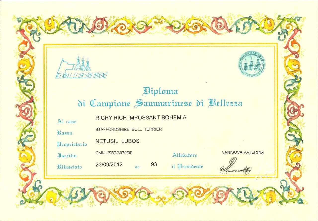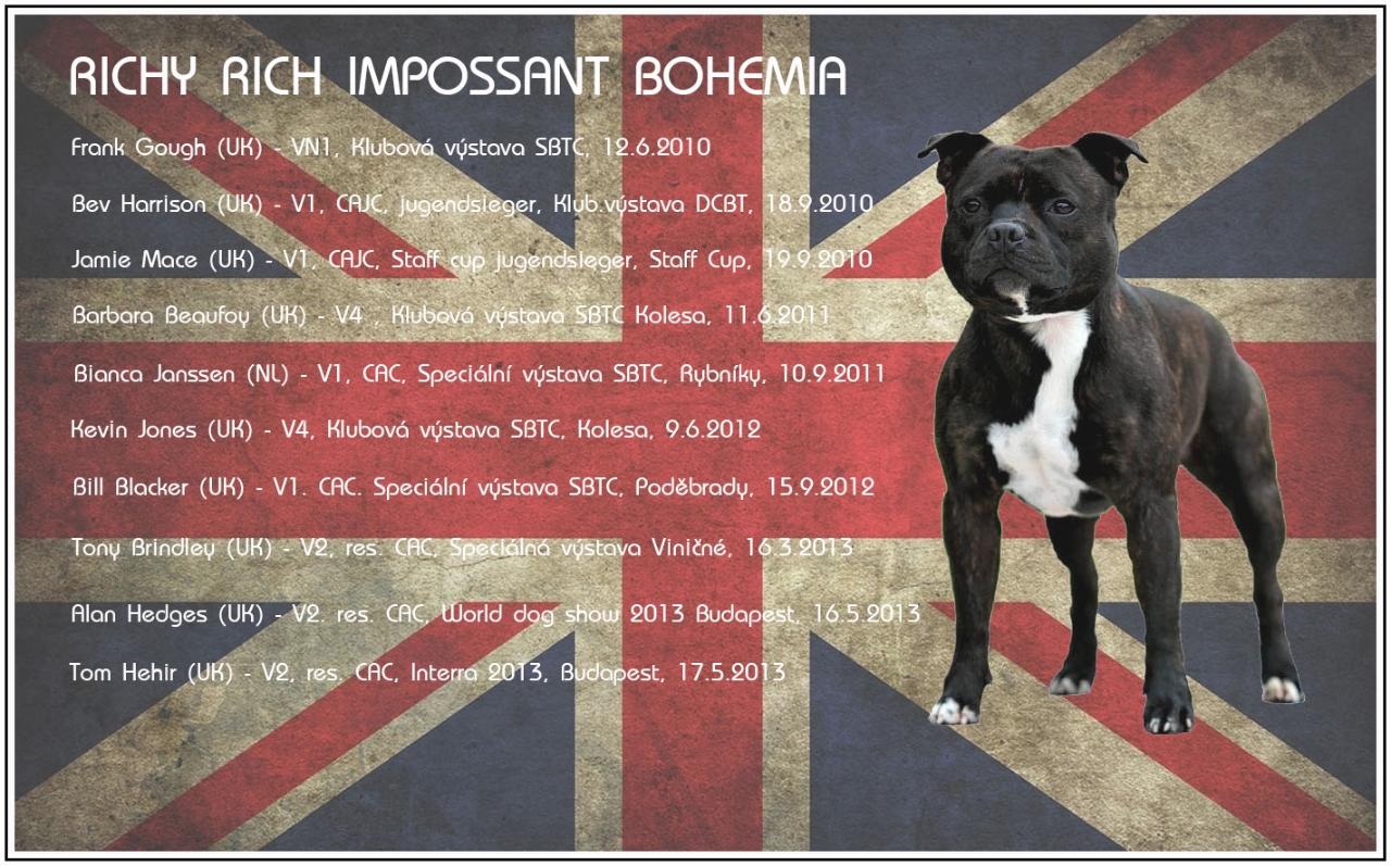 Výsledky našeho miláčka u uznávaných rozhodčích - CH. Richy Rich Impossant Bohemia